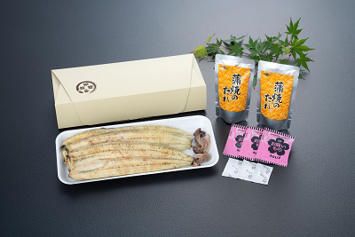 - うなぎ白焼大(約130g以上)×3本・添付たれ80ml×2個・お吸い物、山椒各3個